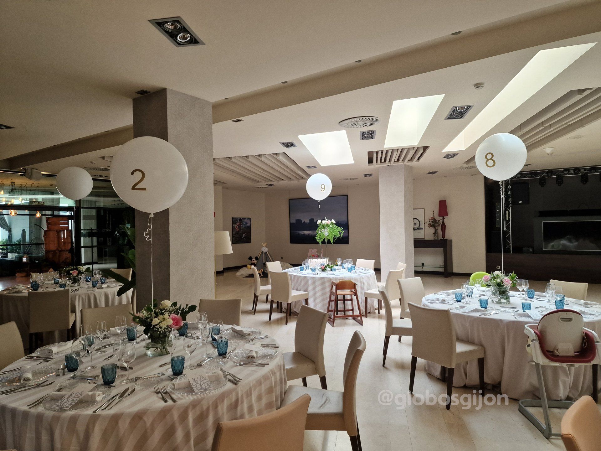 Los globos para numerar las mesas en una boda, es una idea muy bonita que me pidieron Hahn y Ángel para su boda en el NH de Gijón.